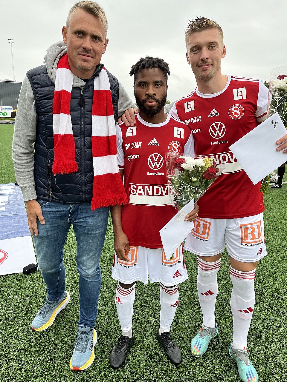 Innan avspark i söndagens match mot Nordic United uppvaktade vi John Junior Igbarumah och Gustav Thörn som båda passerat 150 tävlingsmatcher för Sandvikens IF.