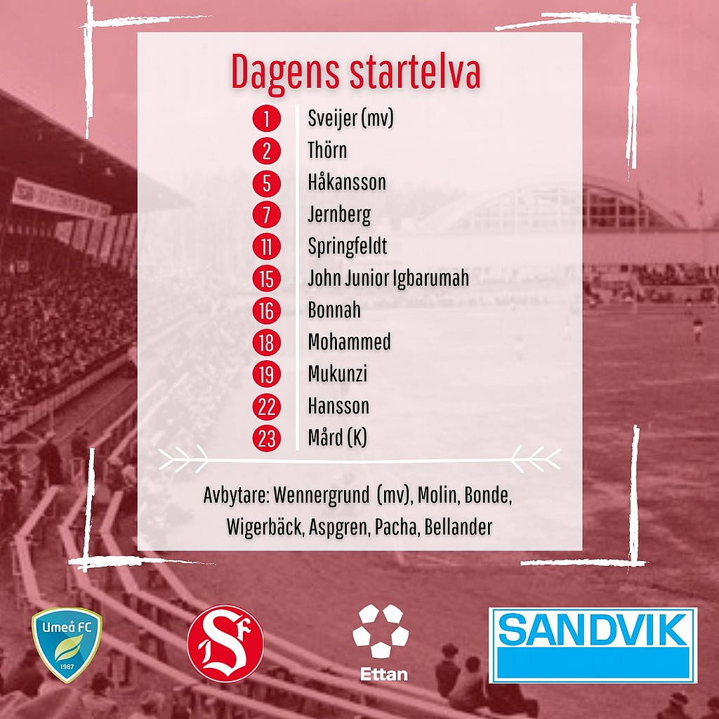 Så här ställer vi upp i dagens match mot Umeå.