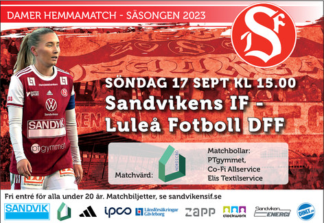 Söndag 17/9 är nästa hemmamatch för damerna i den 20:e omgången i Division 1 Norra då långväga gästerna Luleå Fotboll DFF kommer till Sandviken och Jernvallen.