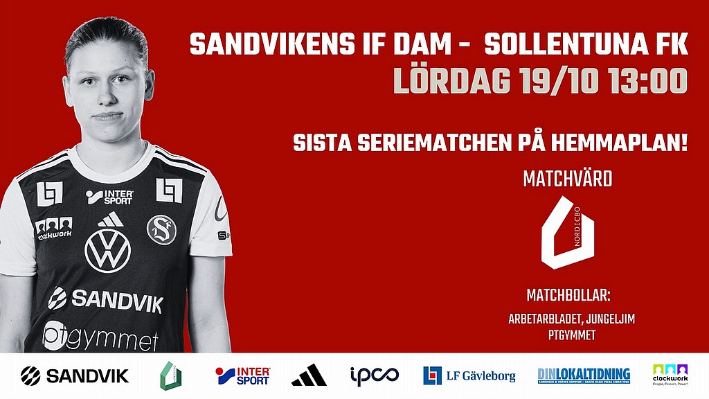 På lördag är det dags för damernas sista hemmamatch i seriespelet för den här säsongen. För motståndet står Sollentuna som i dag ligger fyra i tabellen med samma poäng som vi men med bättre målskillnad.